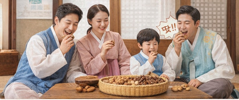 이는 하루의 시작과 함께 한 해의 건강을 먼저 챙긴다는 의미이며, 이때 나는 “딱” 하는 소리가 잡귀를 쫓는다고 여겨졌습니다.